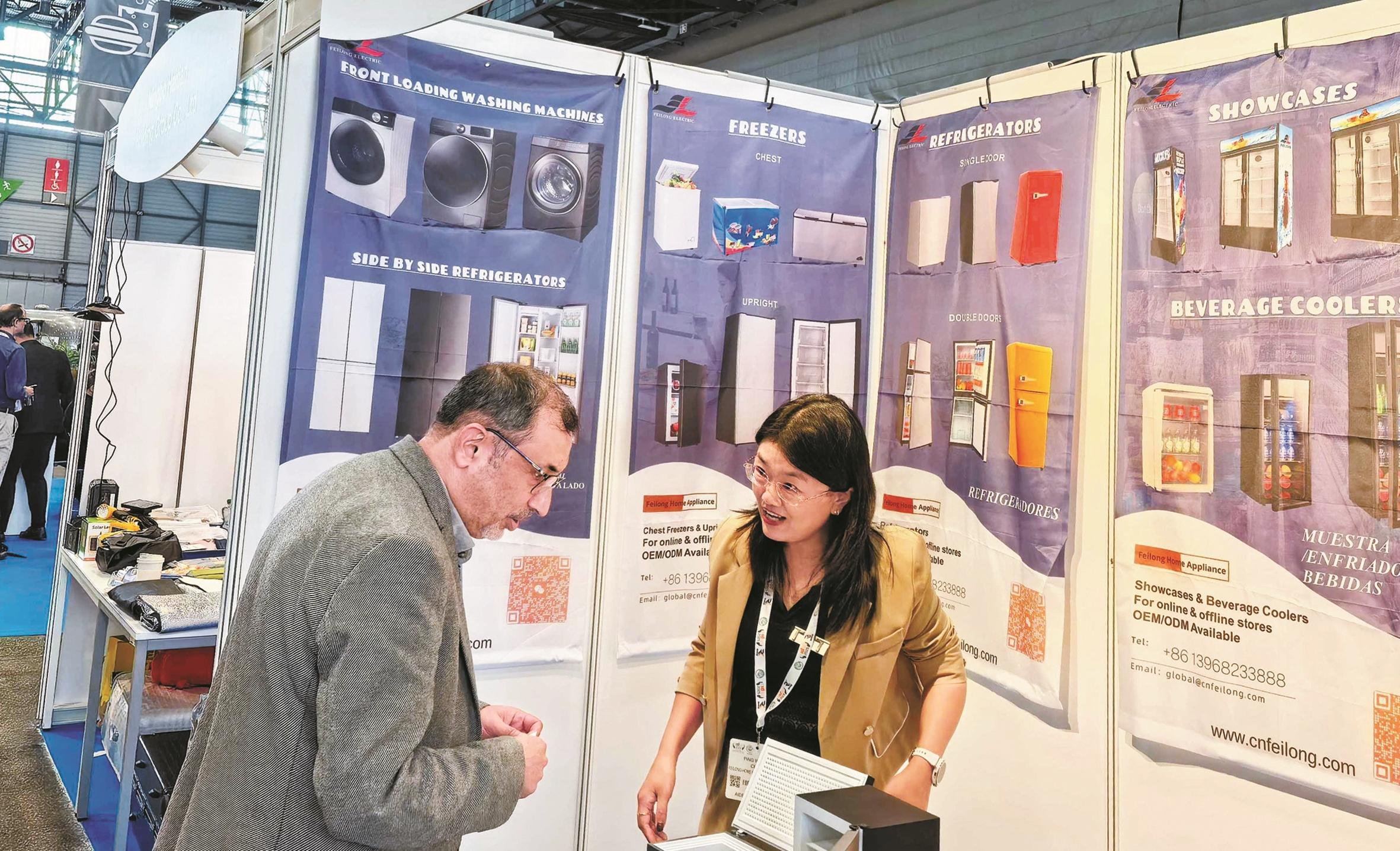 现场,飞龙家电集团有限公司展出的冰箱、冷柜、洗衣机、展示柜等产品琳琅满目,高性价比的优势凸显;宁波戴维医疗器械股份有限公司YP-3100系列婴儿培养箱正在组装中,看起来科技感满满……