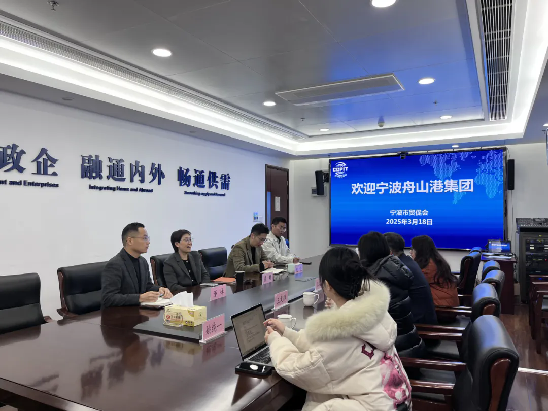 3月18日上午,宁波舟山港集团副总法律顾问、法务合规中心主任张建军一行拜访市贸促会并围绕2025海丝港口合作论坛相关事宜进行座谈交流。市贸促会副会长夏群接待并主持座谈。