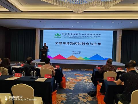 浙江鑫甬生物化工股份有限公司肖杰总工程师作《鑫甬交联单体产品羟丙的特点与应用》,报告从羟丙性能特点及羟丙产品功能应用等方面作了详细解读。