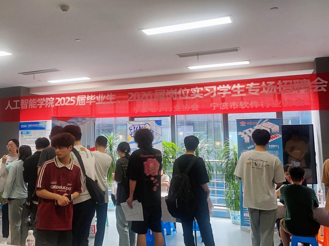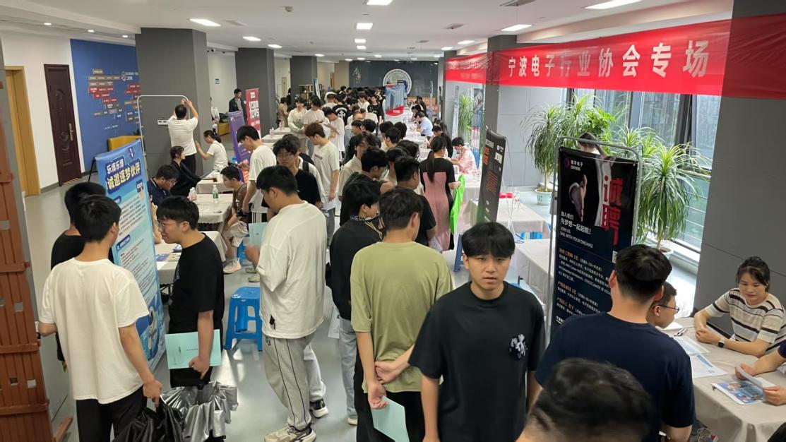 5月23日下午,宁波电子信息相关专业专场招聘会在宁波职业技术学院联盟大厦二楼成功举办。本次招聘会由宁波职业技术学院人工智能学院主办,宁波电子行业协会和宁波市软件行业协会联合承办。参会企业涵盖半导体、电子元器件、智能硬件、工业互联网、人工智能等多个领域,舜宇光电、甬江实验室、尤利卡、伊士通、德洲电子、科联电子、德塔森特等40余家企业来招聘会现场招才引才,共吸引学院2025届和2026届电子相关专业约500名毕业生来现场求职。