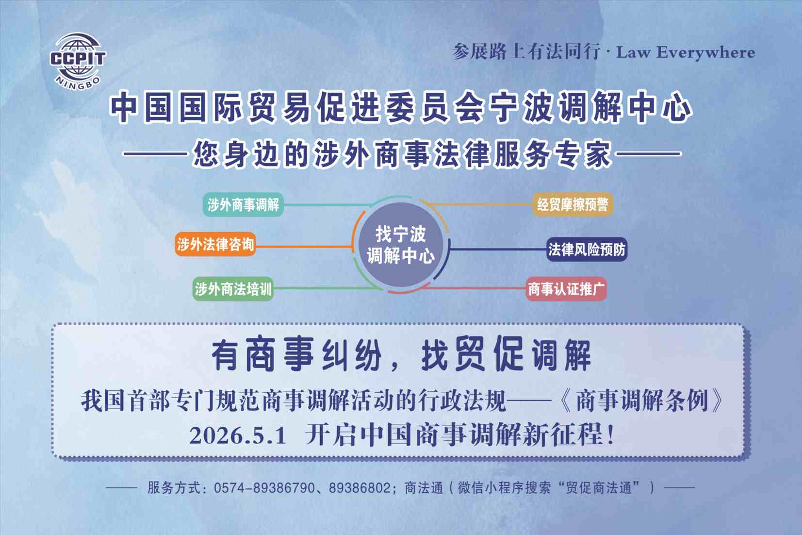 2026宁波国际文具展正值我国首部专门规范商事调解活动的行政法规——《商事调解条例》施行前夕。作为宁波地区最早开展涉外商事调解的专业机构之一,宁波调解中心将依托自身的职能和专业优势,带着《商事调解条例》与商事调解服务走进展会、贴近企业,一方面宣传、介绍《商事调解条例》,使社会多方群体可以充分认识、了解并接受调解,推动商事纠纷通过非诉方式化解;另一方面为本届文具展提供一个非诉争议解决平台,以“现场驻点+电话直联”的形式,由宁波调解中心专职调解员为参展客商提供商事合同纠纷、知识产权纠纷等调解服务,帮助企业解决实实在在的问题。